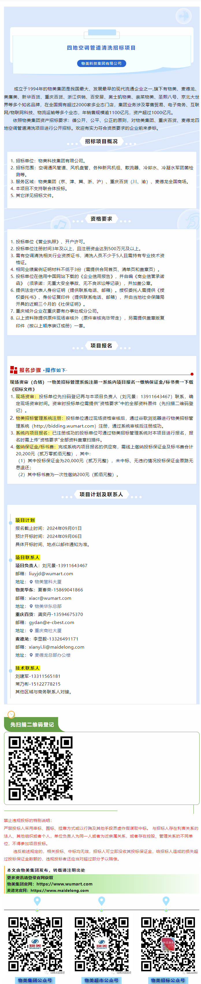 物美集团、重庆百货、麦德龙四地空调管道清洗项目联合招标公告