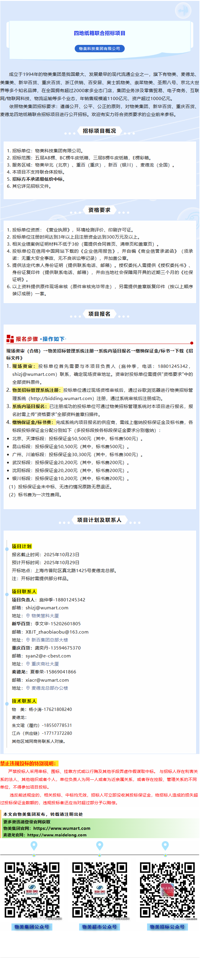 物美集团、新华百货、重庆百货、麦德龙四地纸箱联合招标项目公告